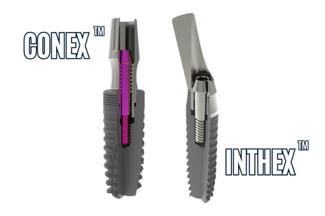 ConEx™ è la linea implantare con connessione conometrica che sfrutta un accoppiamento conico a Cono Morse molto preciso fra impianto-moncone e moncone-protesi.